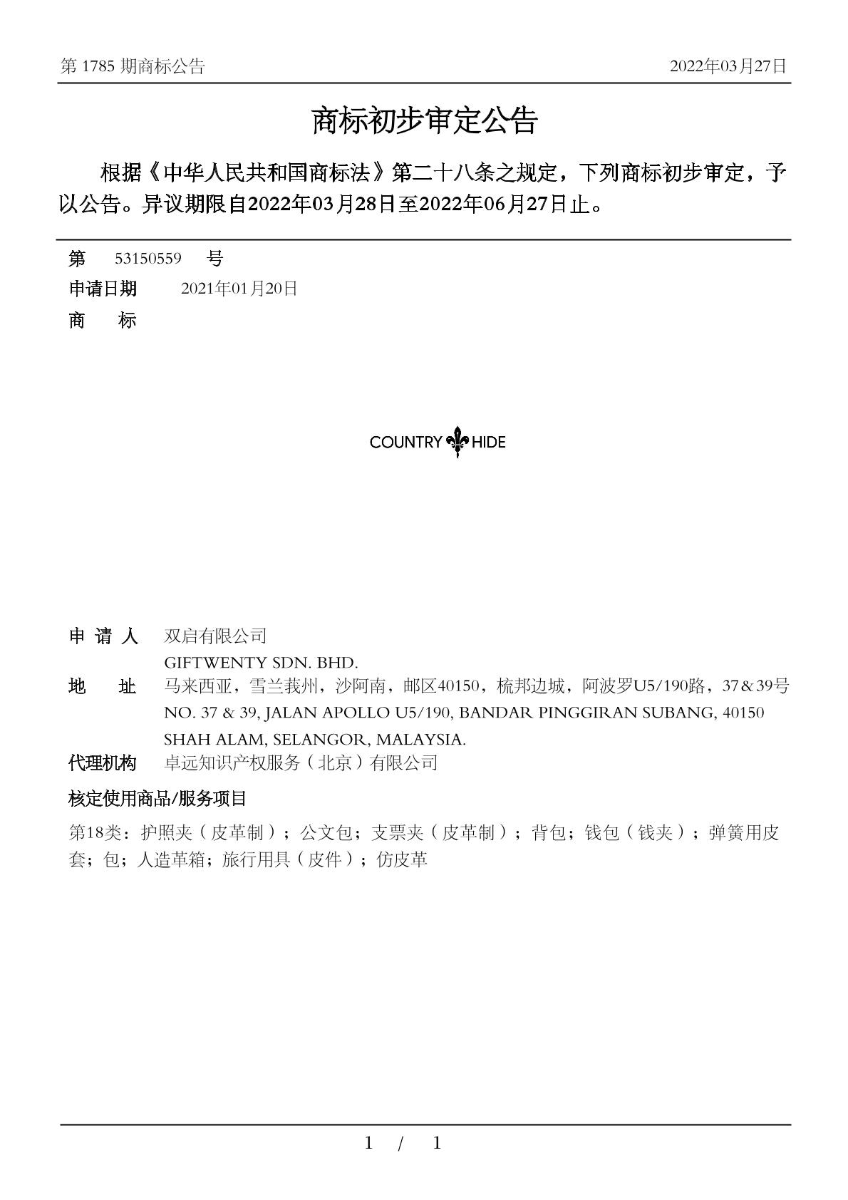 1801-仿皮革;1802-人造革箱;1802-公文包;1802-包;1802-弹簧用皮套;1802-护照夹(皮革制);1802-支票夹(皮革制);1802-旅行用具(皮件);1802-背包;1802-钱包(钱夹) - 1785