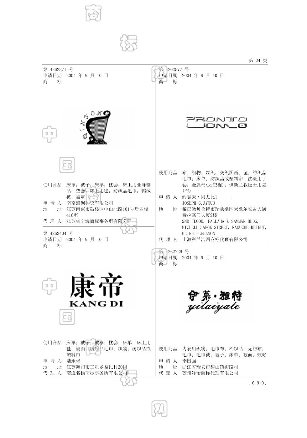 2401-布;2401-织物;2402-金属棉(太空棉);2403-丝织、交织图画;2404-毡;2405-纺织品毛巾;2406-床单;2407-纺织品或塑料帘;2408-洗涤用手套;2409-伊斯兰教隐士用龛(布) - 1106