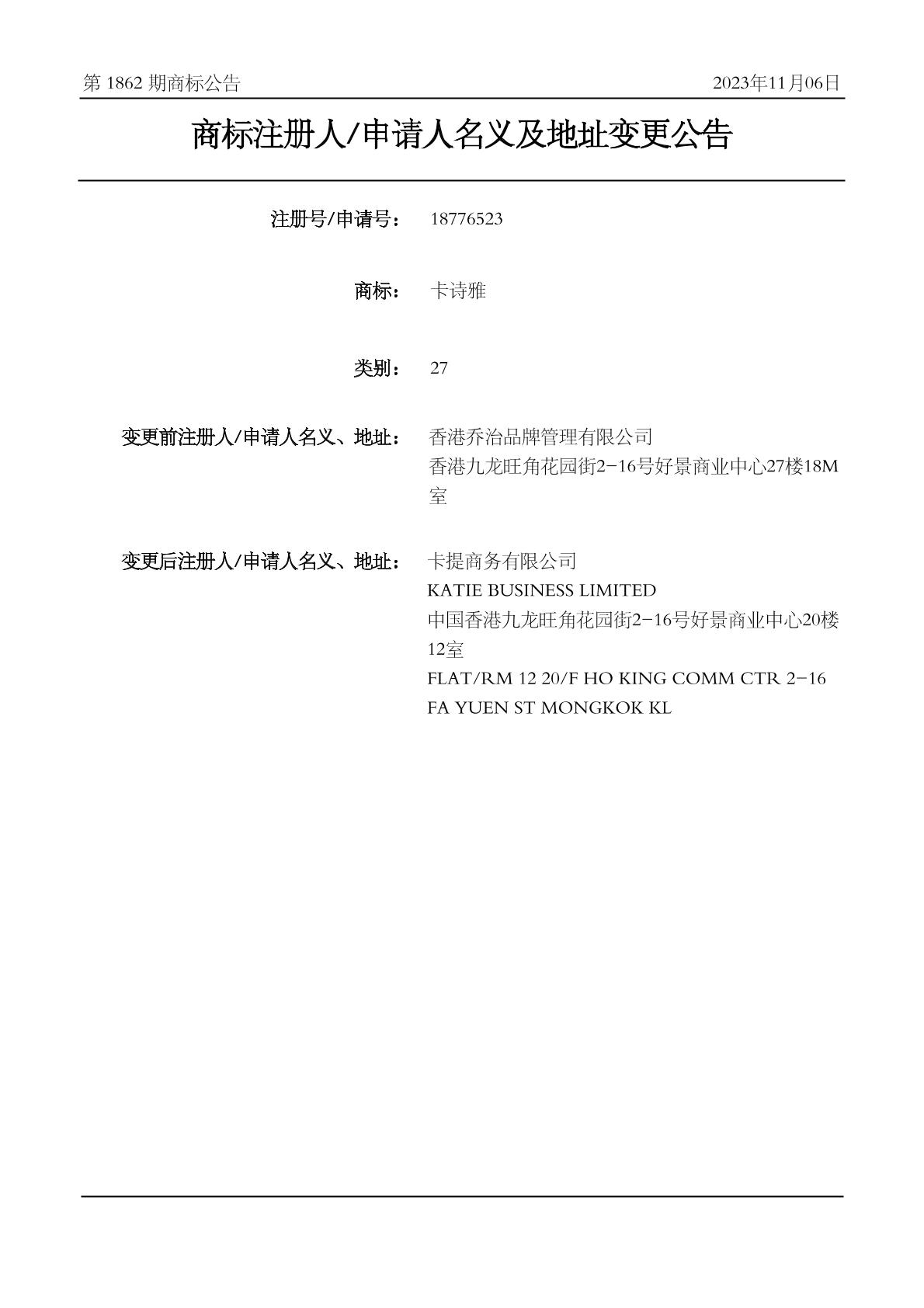 2023-11-07 变更商标申请人/注册人名义/地址 | 核准证明打印发送