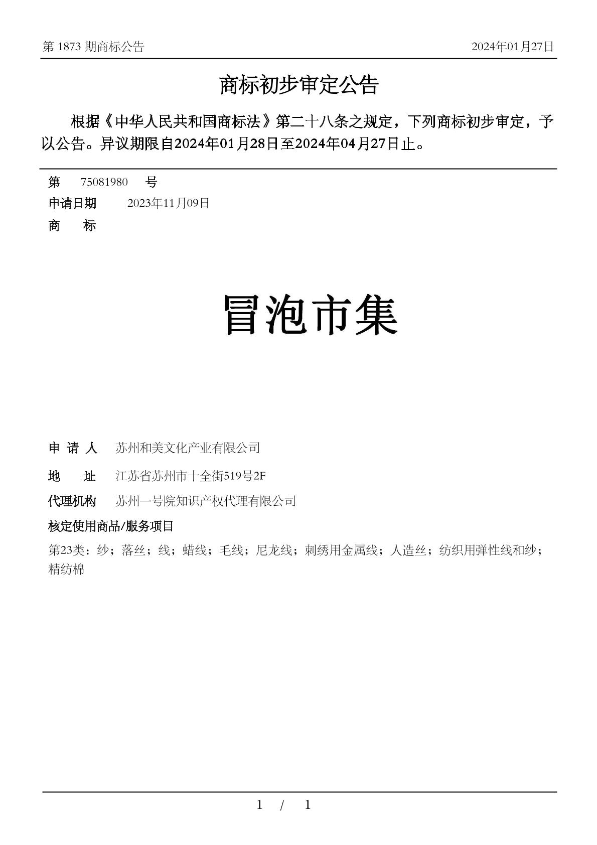 【冒泡市集】商标详情