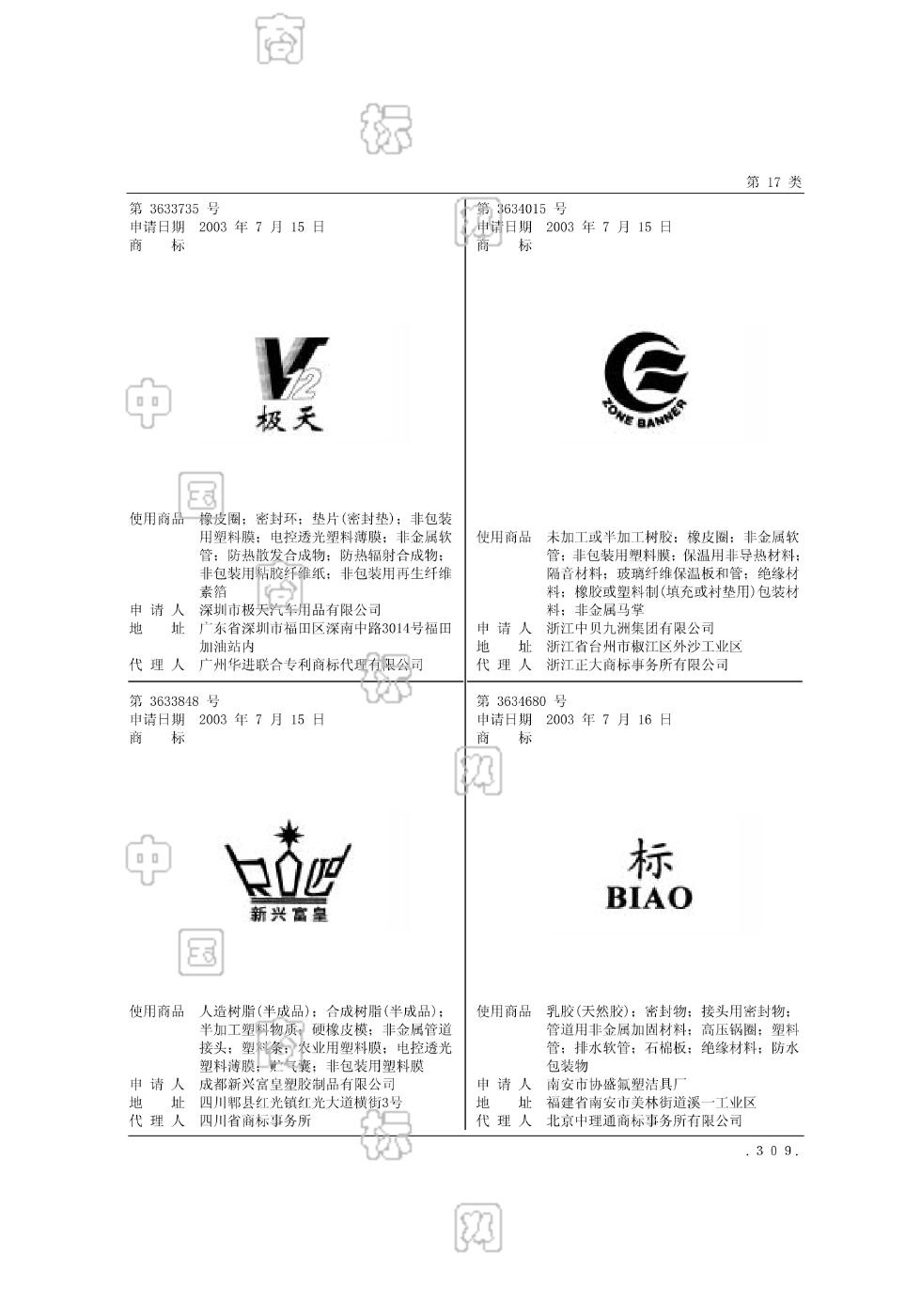 1701-乳胶(天然胶);1702-密封物;1702-接头用密封物;1702-管道用非金属加固材料;1702-高压锅圈;1703-塑料管;1704-排水软管;1705-石棉板;1706-绝缘材料;1707-防水包装物 - 967