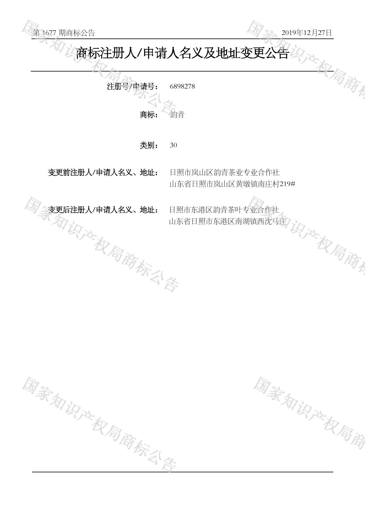 2019-12-14 变更商标申请人/注册人名义/地址 | 核准证明打印发送
