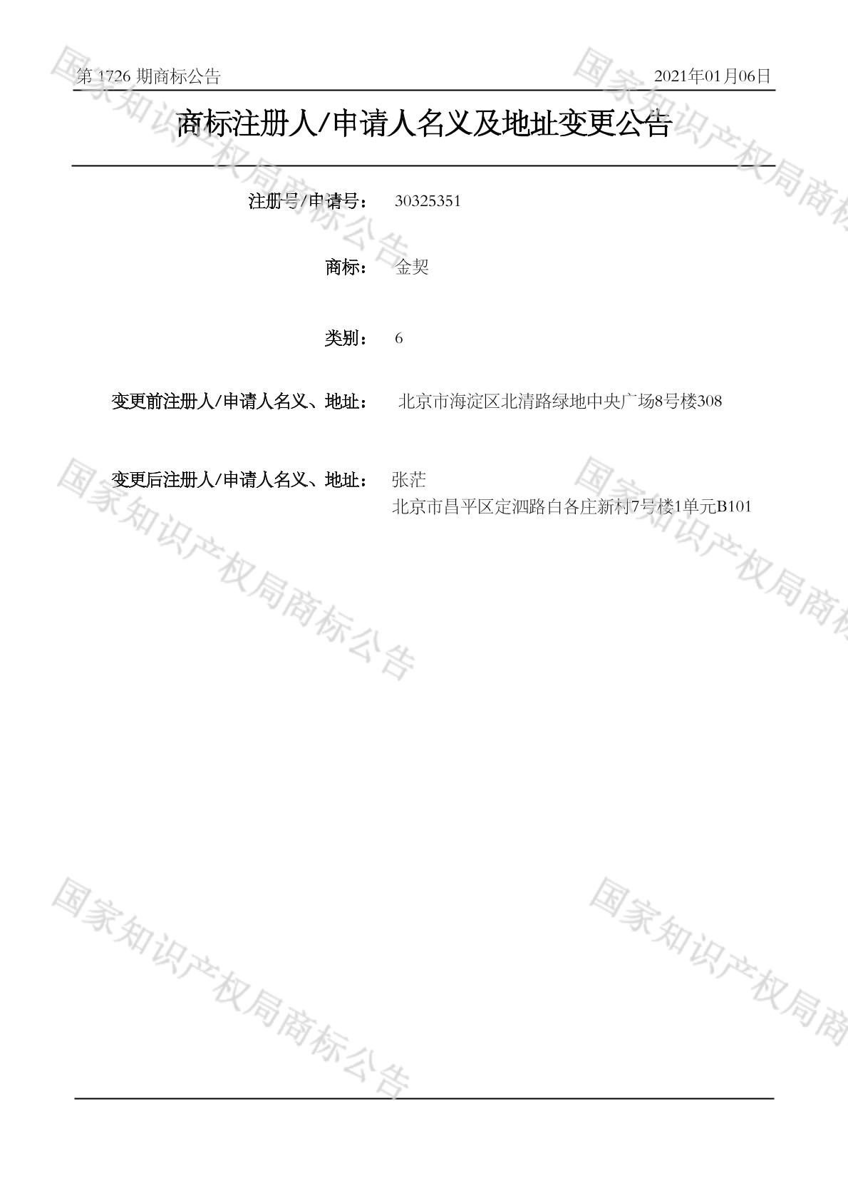 2021-06-23 变更商标申请人/注册人名义/地址 | 核准证明打印发送