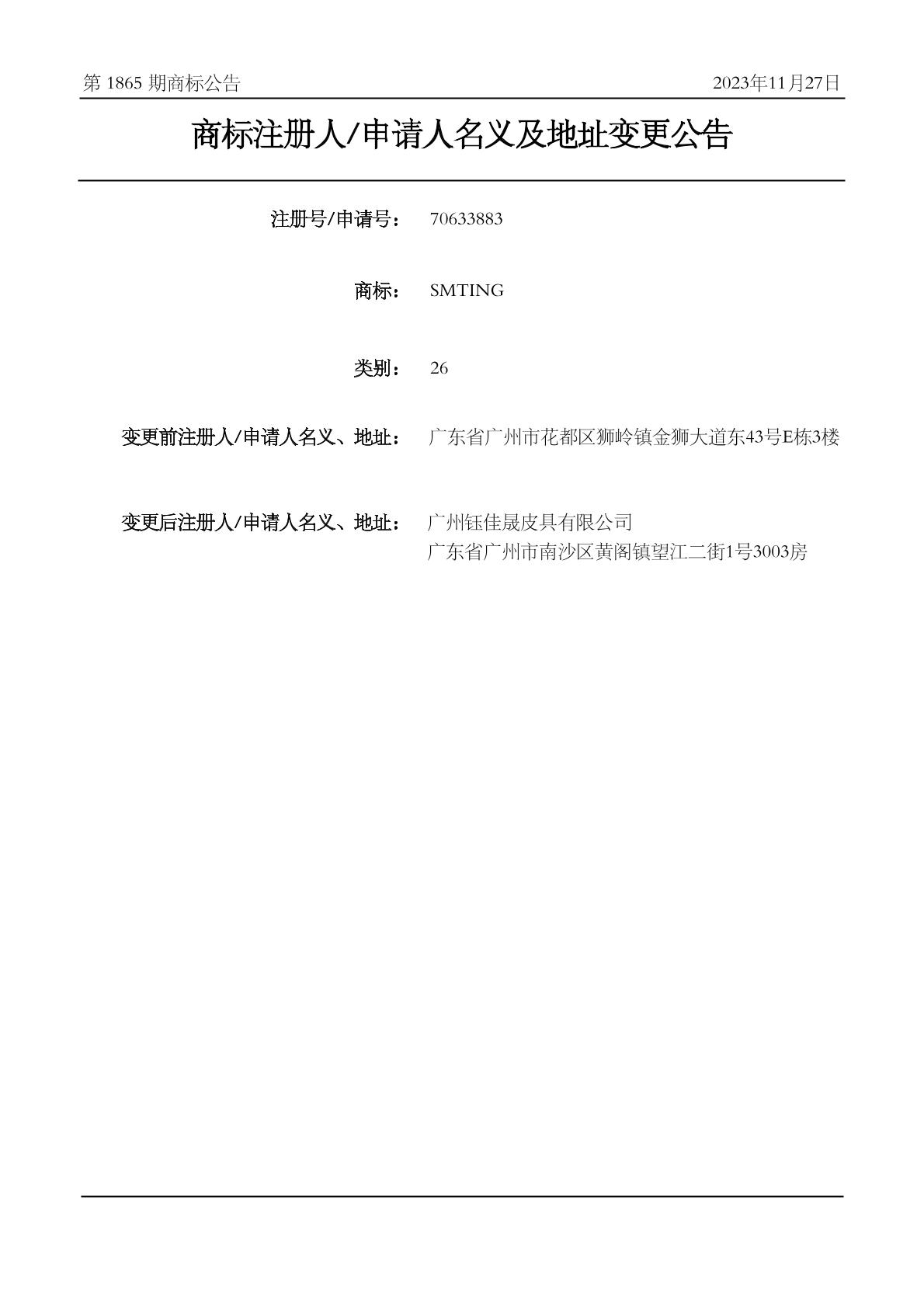2023-11-21 变更商标申请人/注册人名义/地址 | 核准证明打印发送