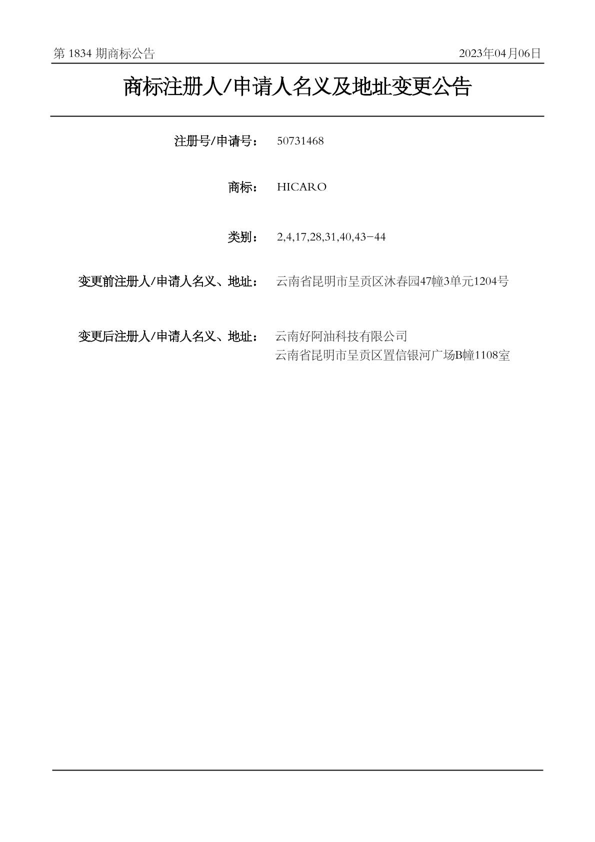 2023-04-01 变更商标申请人/注册人名义/地址 | 核准证明打印发送