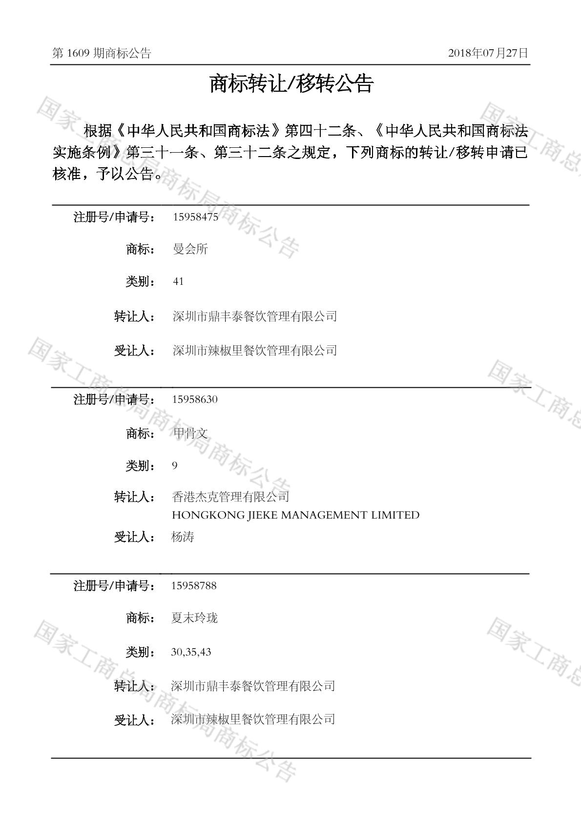 2018-02-07 商标转让 | 申请收文