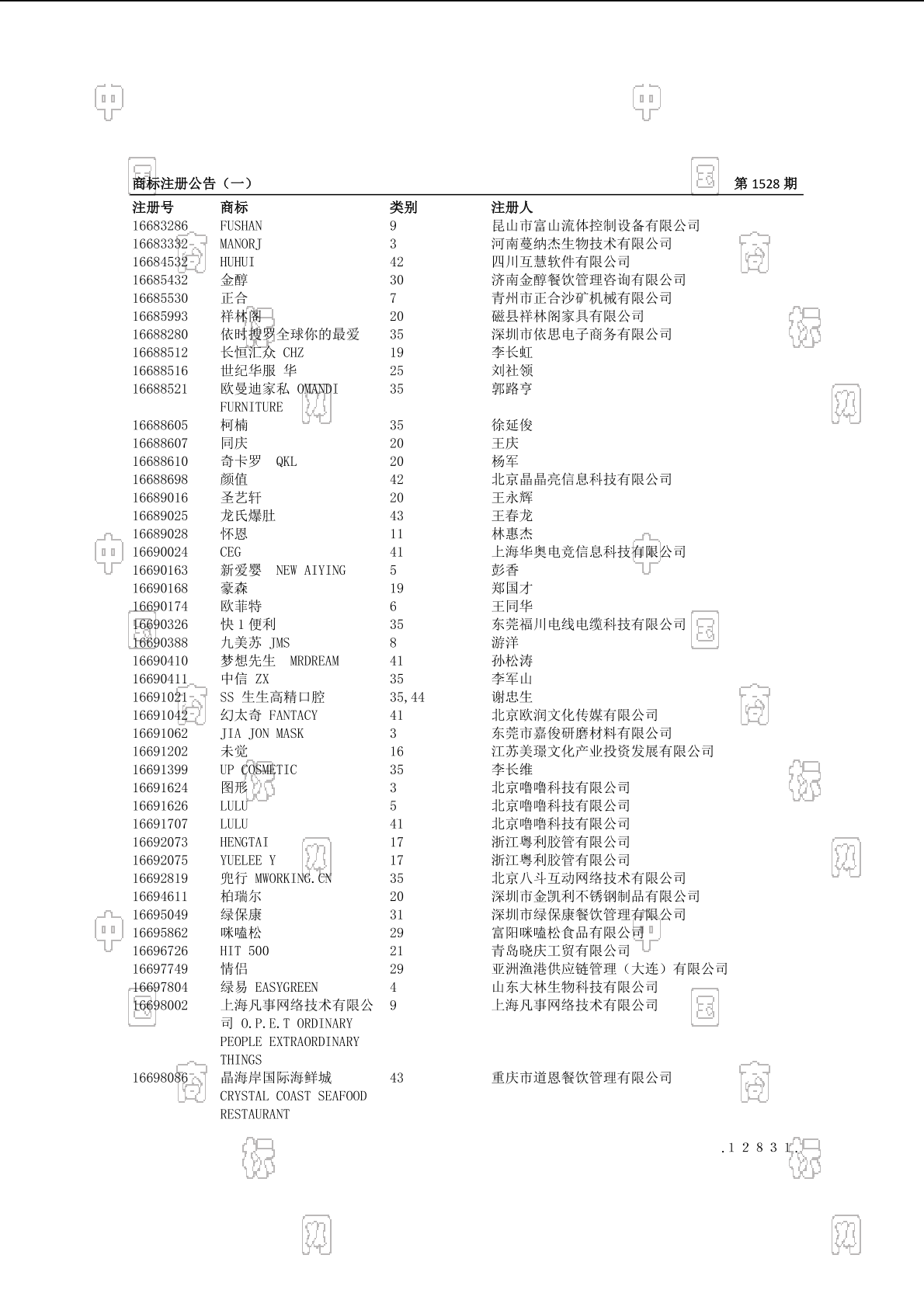 4209-替他人研究和开发新产品;4211-化妆品研究;4212-临床试验;4216-包装设计;4220-把有形的数据或文件转换成电子媒体;4220-计算机系统设计;4220-计算机编程;4220-计算机软件咨询;4220-计算机软件维护;4220-计算机软件设计 - 1516