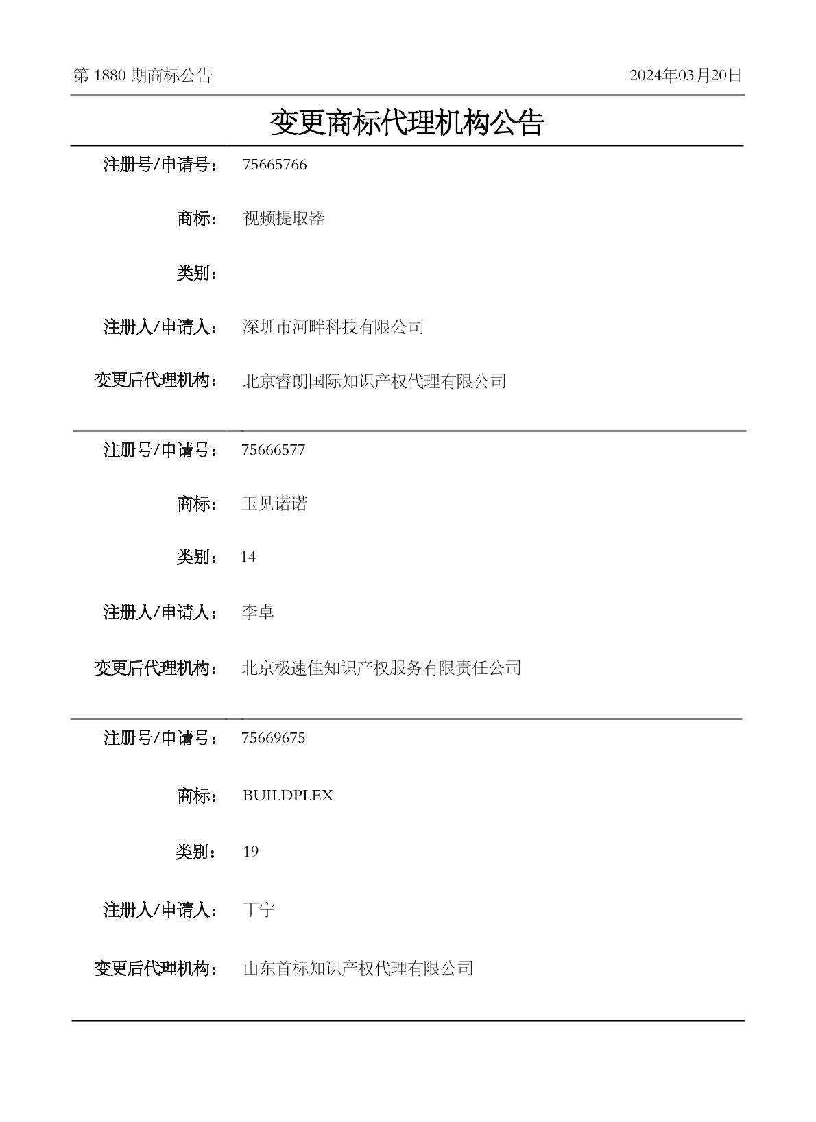 2024-03-15 变更商标代理人 | 核准通知打印发送
