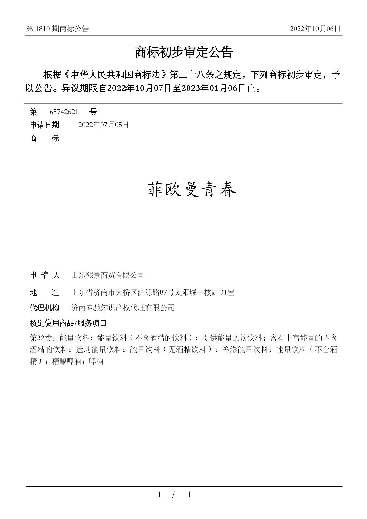 【菲欧曼青春】商标详情
