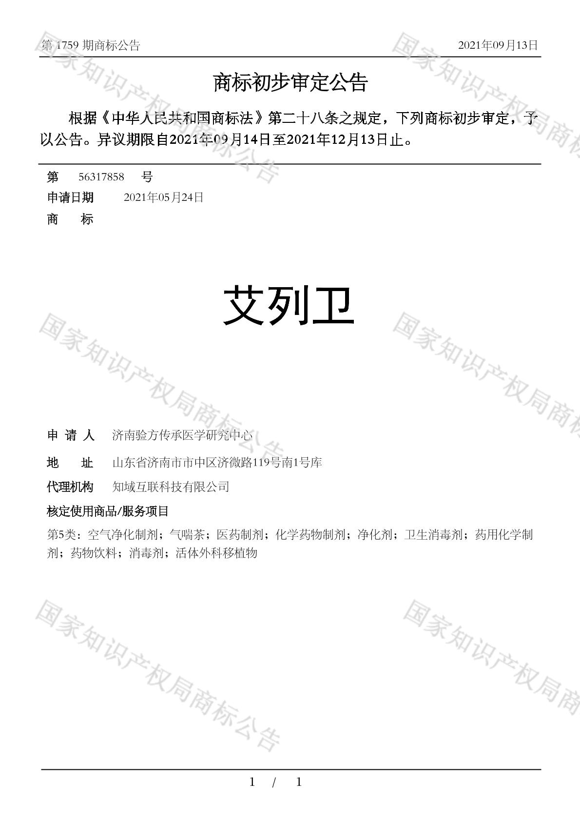 0501-化学药物制剂;0501-医药制剂;0501-卫生消毒剂;0501-气喘茶;0501-活体外科移植物;0501-消毒剂;0501-药物饮料;0501-药用化学制剂;0503-净化剂;0503-空气净化制剂 - 1759