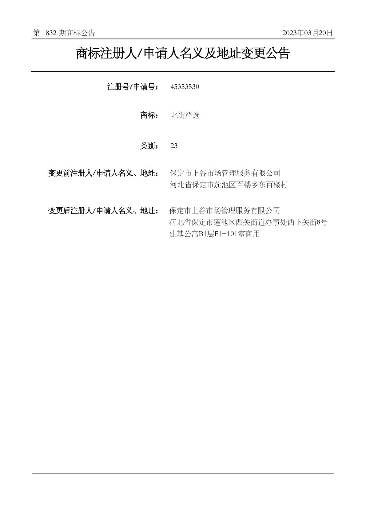 2023-03-16 变更商标申请人/注册人名义/地址 | 核准证明打印发送