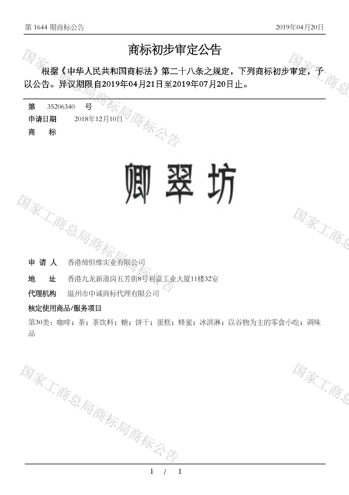 【卿翠坊】商标详情
