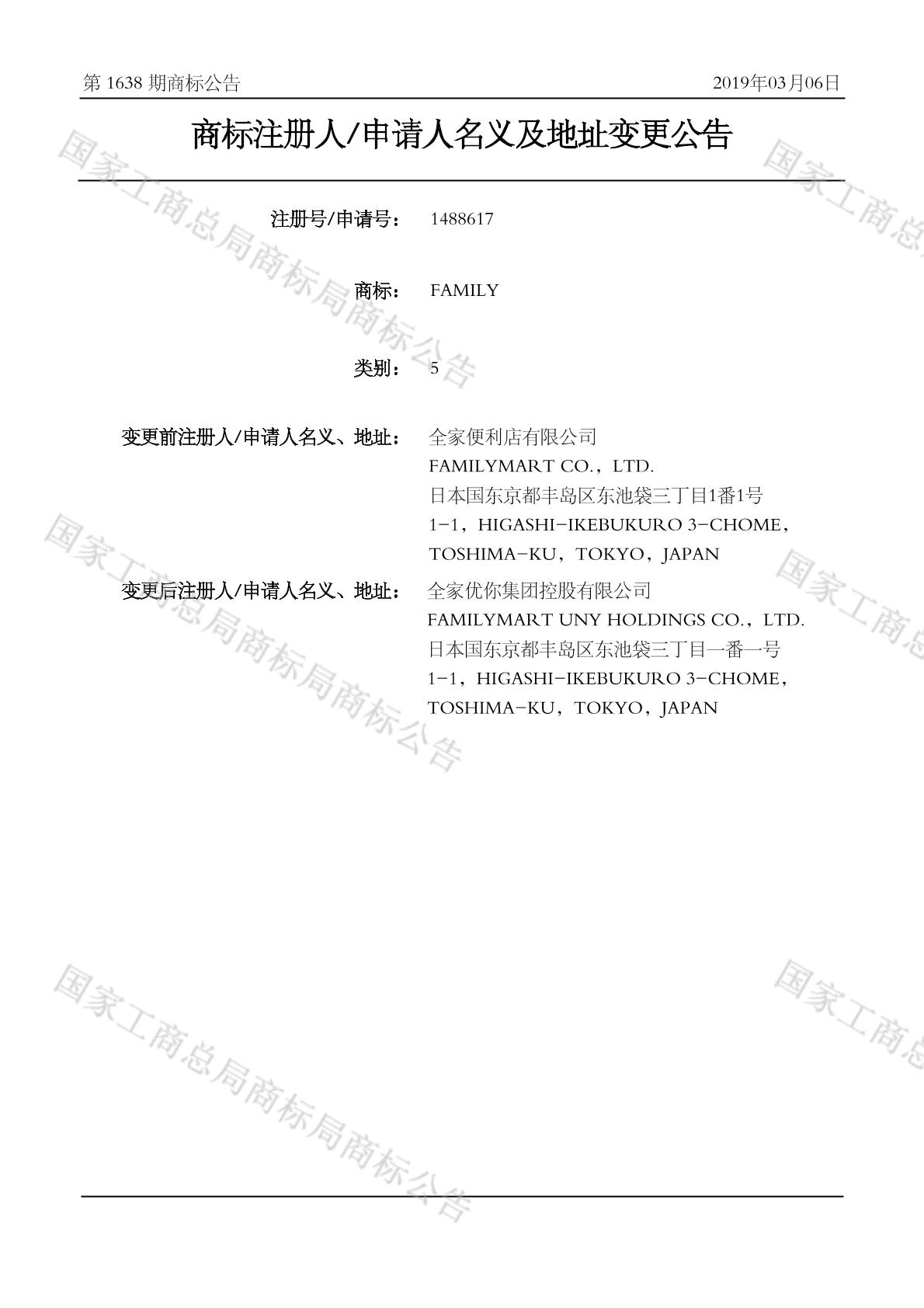 商标注册人申请人名义及地址变更公告 2019-03-06 第1638期 查看公告