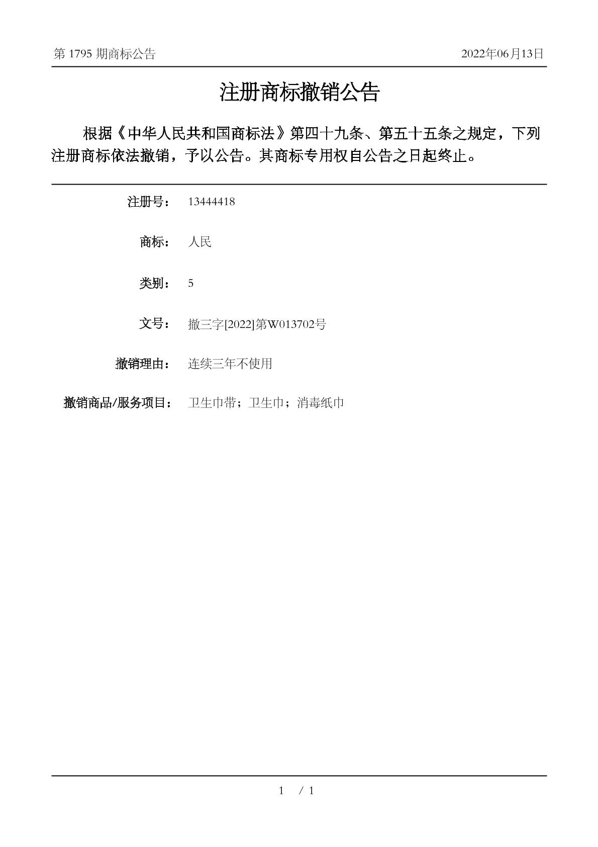2022-07-04 撤销连续三年停止使用注册商标 | 注册证发文