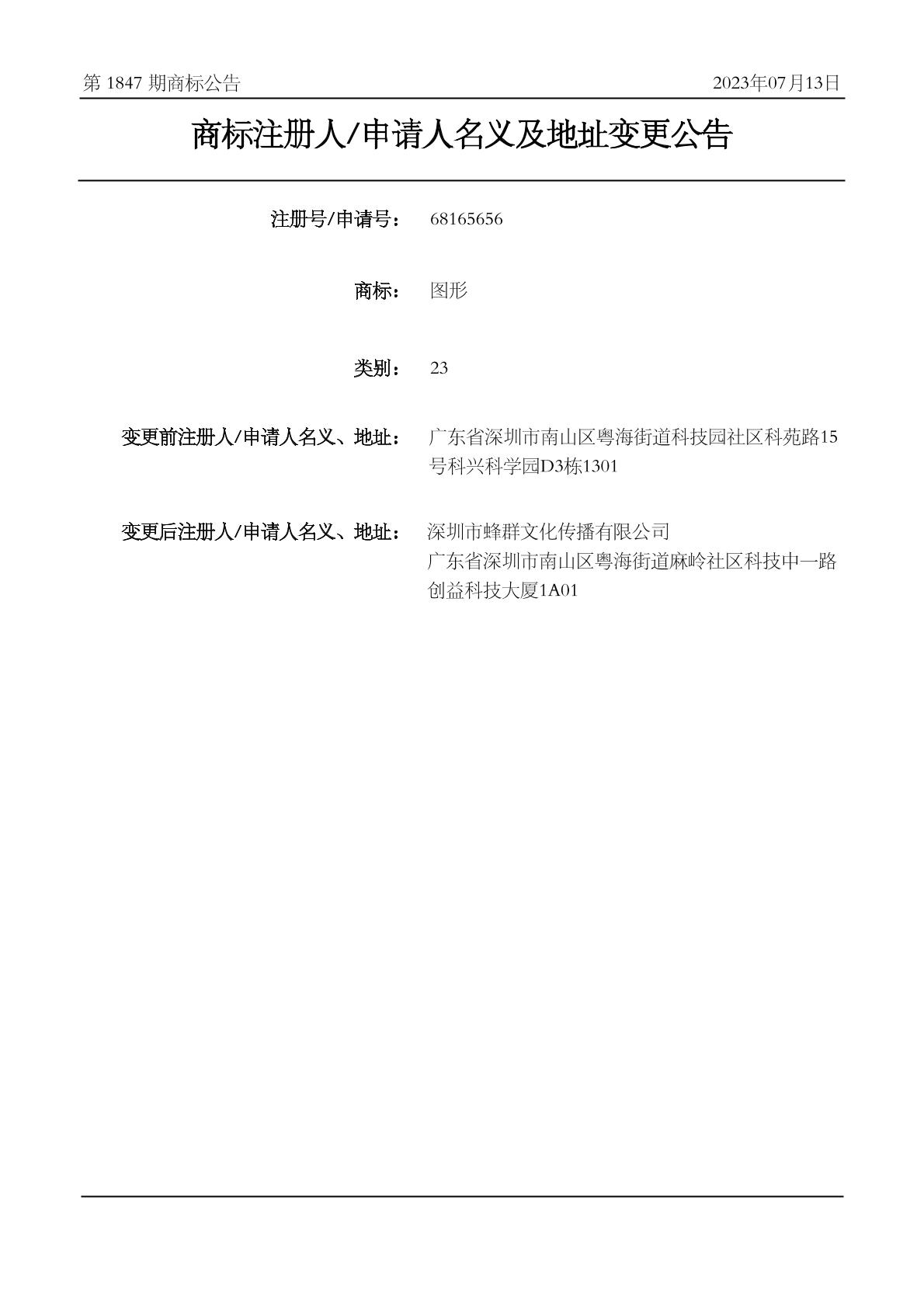 2023-07-06 变更商标申请人/注册人名义/地址 | 申请收文