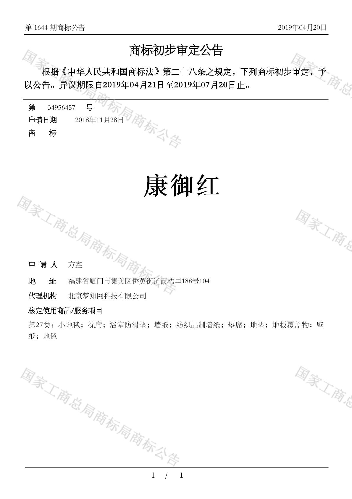 2701-地毯;2701-小地毯;2702-垫席;2702-枕席;2703-地垫;2703-地板覆盖物;2703-浴室防滑垫;2704-墙纸;2704-壁纸;2704-纺织品制墙纸 - 1644