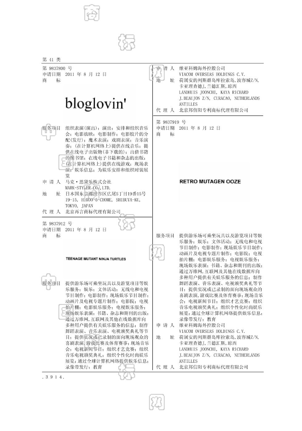 【TEENAGE MUTANT NINJA TRUTLES】商标详情