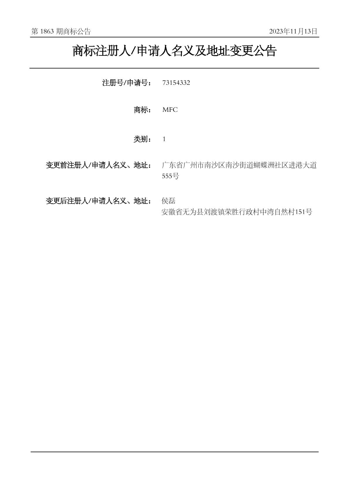 2023-11-05 变更商标申请人/注册人名义/地址 | 申请收文