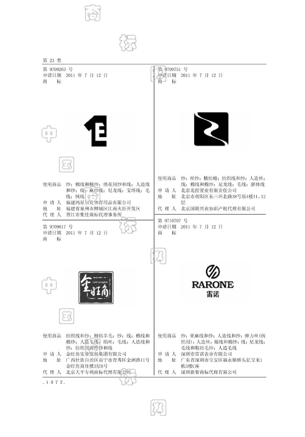 2301-亚麻线和纱;2301-人造丝;2301-人造线和纱;2301-弹力丝(纺织用);2301-棉线和棉纱;2301-毛线和粗纺毛纱;2301-纱;2302-亚麻线和纱;2302-人造线和纱;2302-尼龙线;2302-棉线和棉纱;2302-线;2303-人造毛线;2303-毛线和粗纺毛纱 - 1312