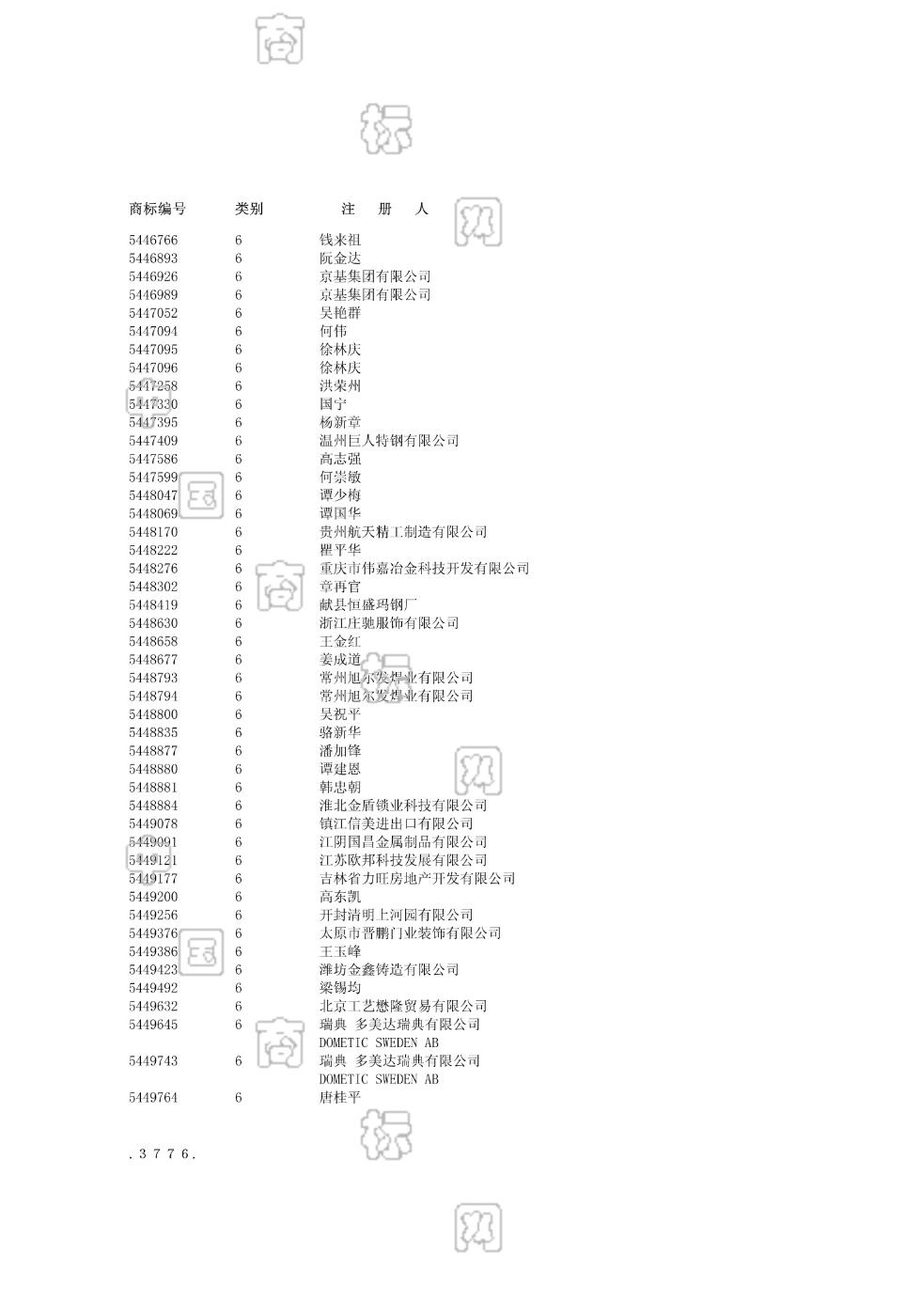 0601-未锻或半锻钢;0602-金属管;0603-金属建筑材料;0605-金属丝网;0606-电缆和管道用金属夹;0607-螺栓;0614-金属标志牌;0616-金焊料;0622-普通金属艺术品;0624-金属碑 - 1157