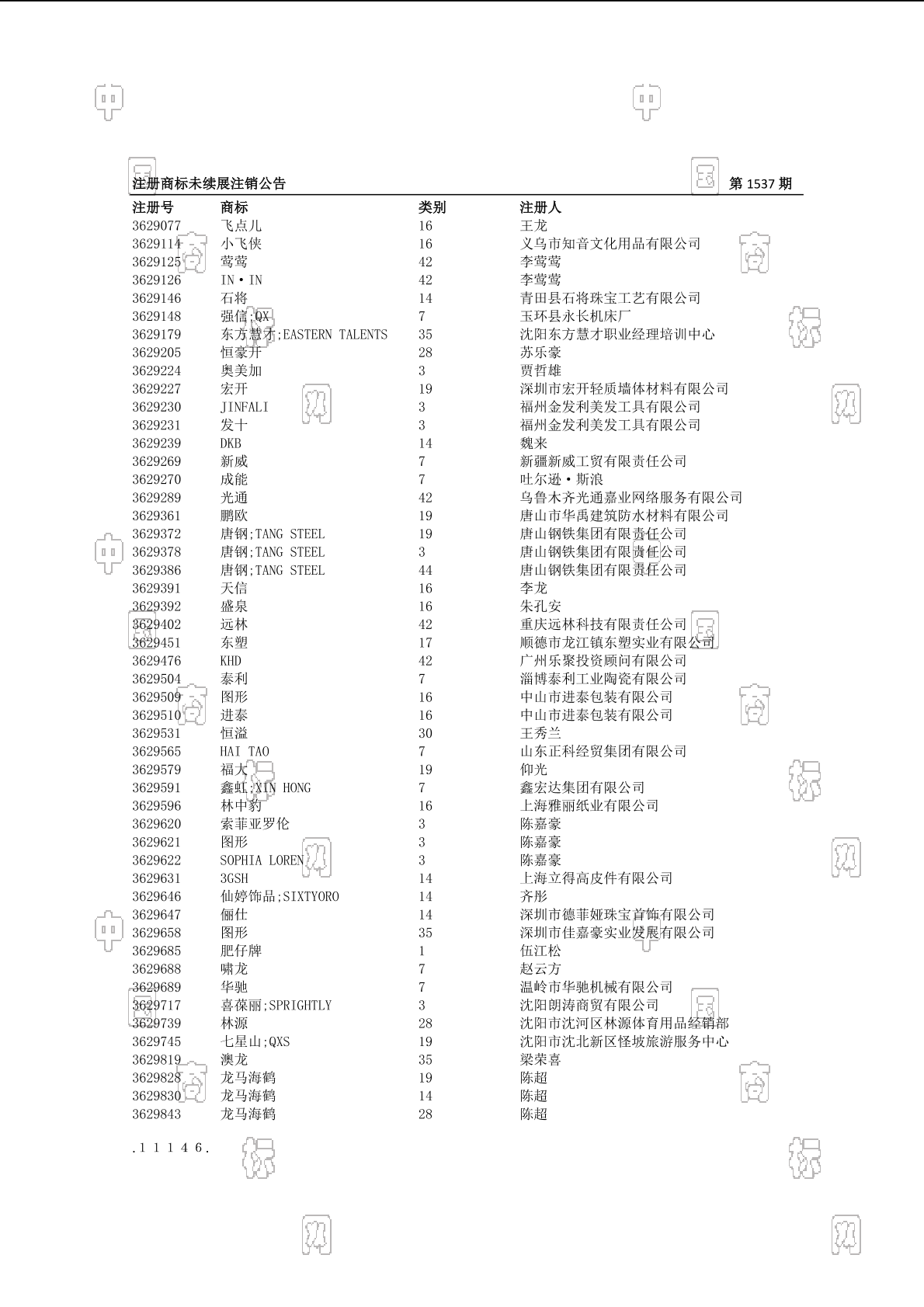 2017-02-05 期满未续展注销商标 | 排版未续展注销公告