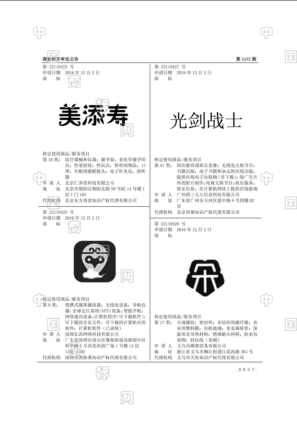 2016-12-02 商标注册申请 | 申请收文