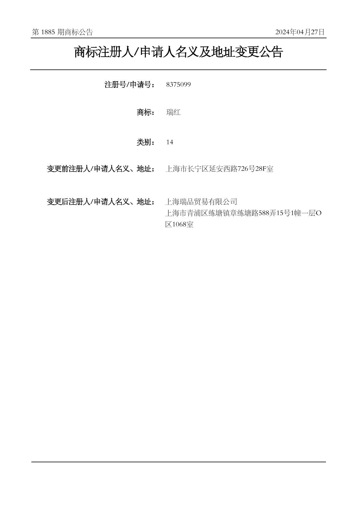 2024-04-20 变更商标申请人/注册人名义/地址 | 核准证明打印发送