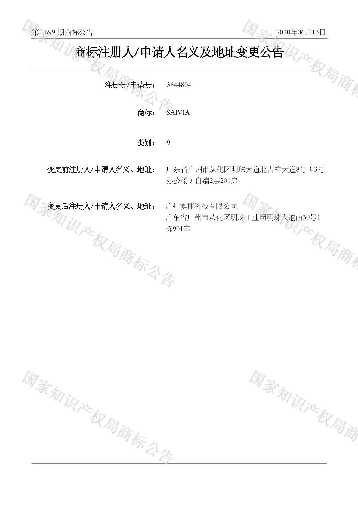2020-06-08 变更商标申请人/注册人名义/地址 | 核准证明打印发送