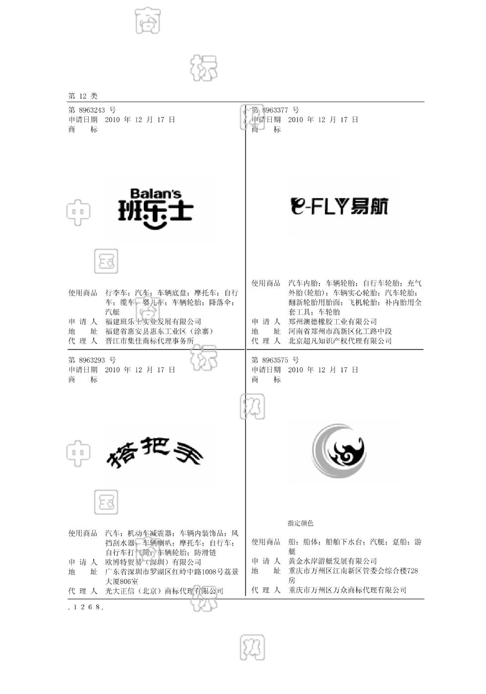 1201-行李车;1202-汽车;1202-车辆底盘;1203-摩托车;1204-自行车;1205-缆车;1206-婴儿车;1208-车辆轮胎;1209-降落伞;1210-汽艇 - 1281