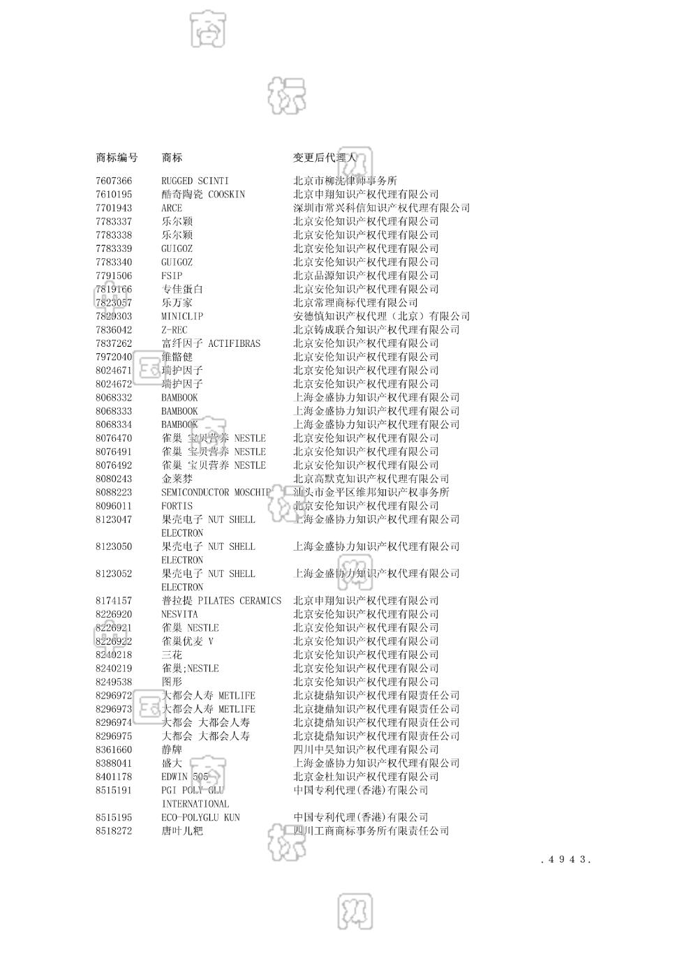 变更商标代理机构公告 2011-11-06 第1286期 查看公告