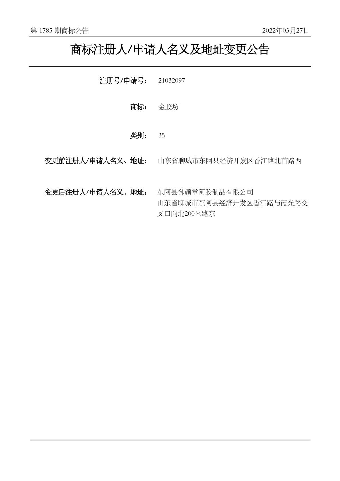 2022-03-20 变更商标申请人/注册人名义/地址 | 核准证明打印发送