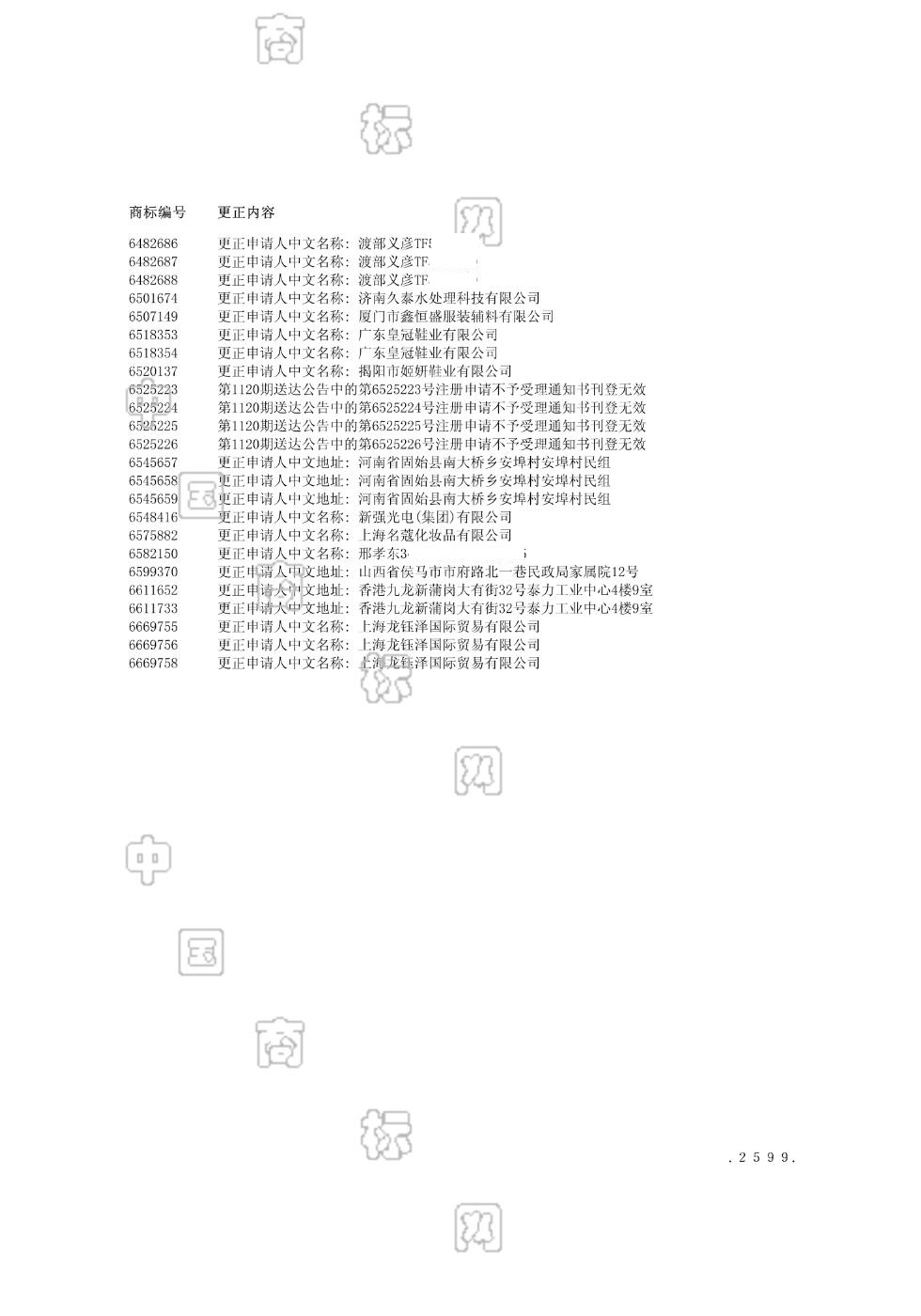 商标更正公告 2008-07-06 第1126期 查看公告