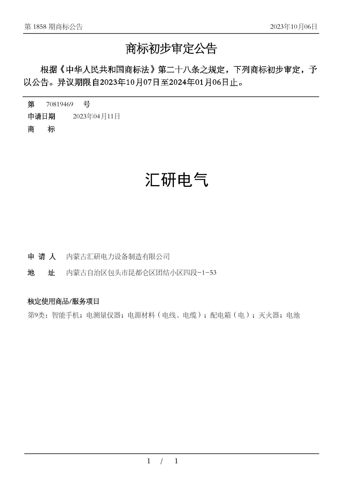 【汇研电气】商标详情