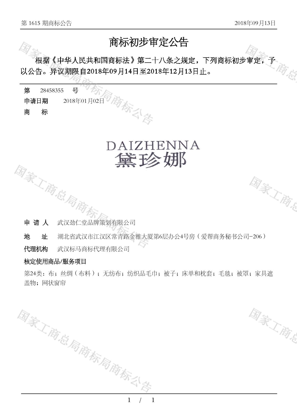 2401-丝绸(布料);2401-布;2402-无纺布;2405-纺织品毛巾;2406-床单和枕套;2406-毛毯;2406-被子;2406-被罩;2407-家具遮盖物;2407-网状窗帘 - 1615