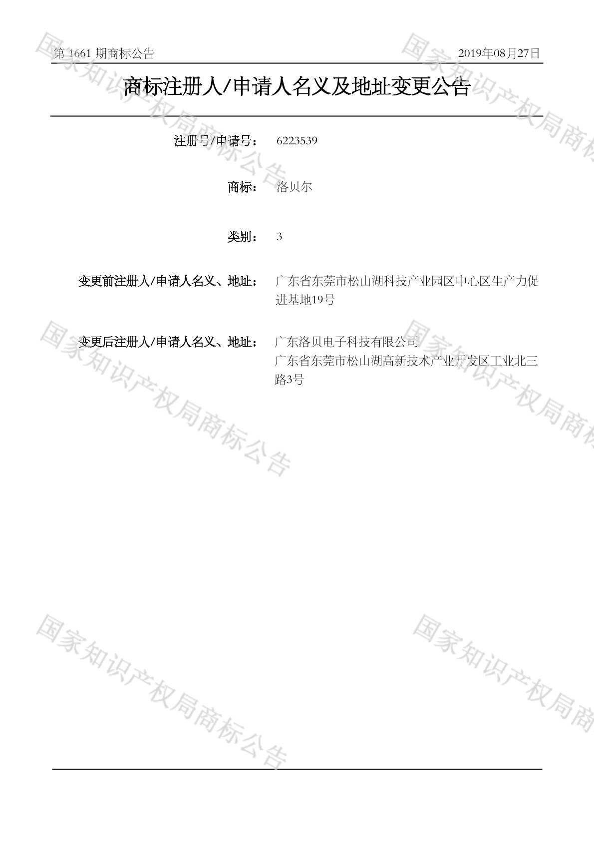 2019-08-16 变更商标申请人/注册人名义/地址 | 核准证明打印发送