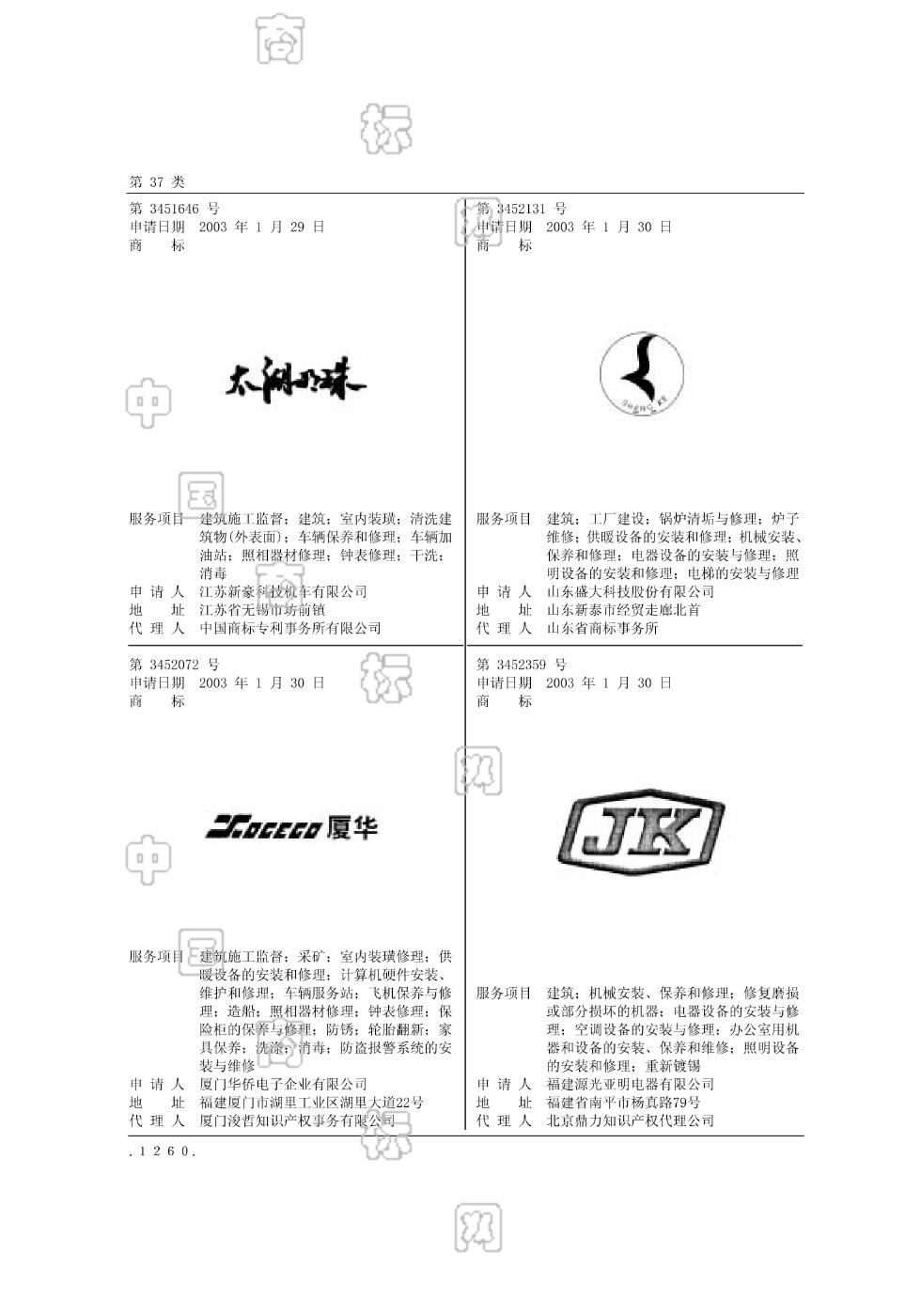 3701-建筑施工监督;3703-采矿;3704-室内装璜修理;3705-供暖设备的安装和修理;3706-计算机硬件安装、维护和修理;3707-车辆服务站;3708-飞机保养与修理;3709-造船;3710-照相器材修理;3711-钟表修理;3712-保险柜的保养与修理;3713-防锈;3714-轮胎翻新;3715-家具保养;3716-洗涤;3717-消毒;3718-防盗报警系统的安装与维修 - 948