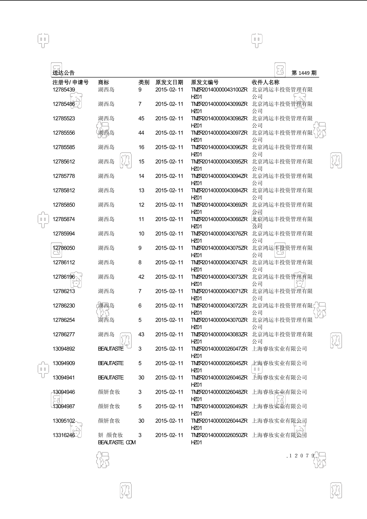 2015-03-12 商标转让 | 退信信息录入