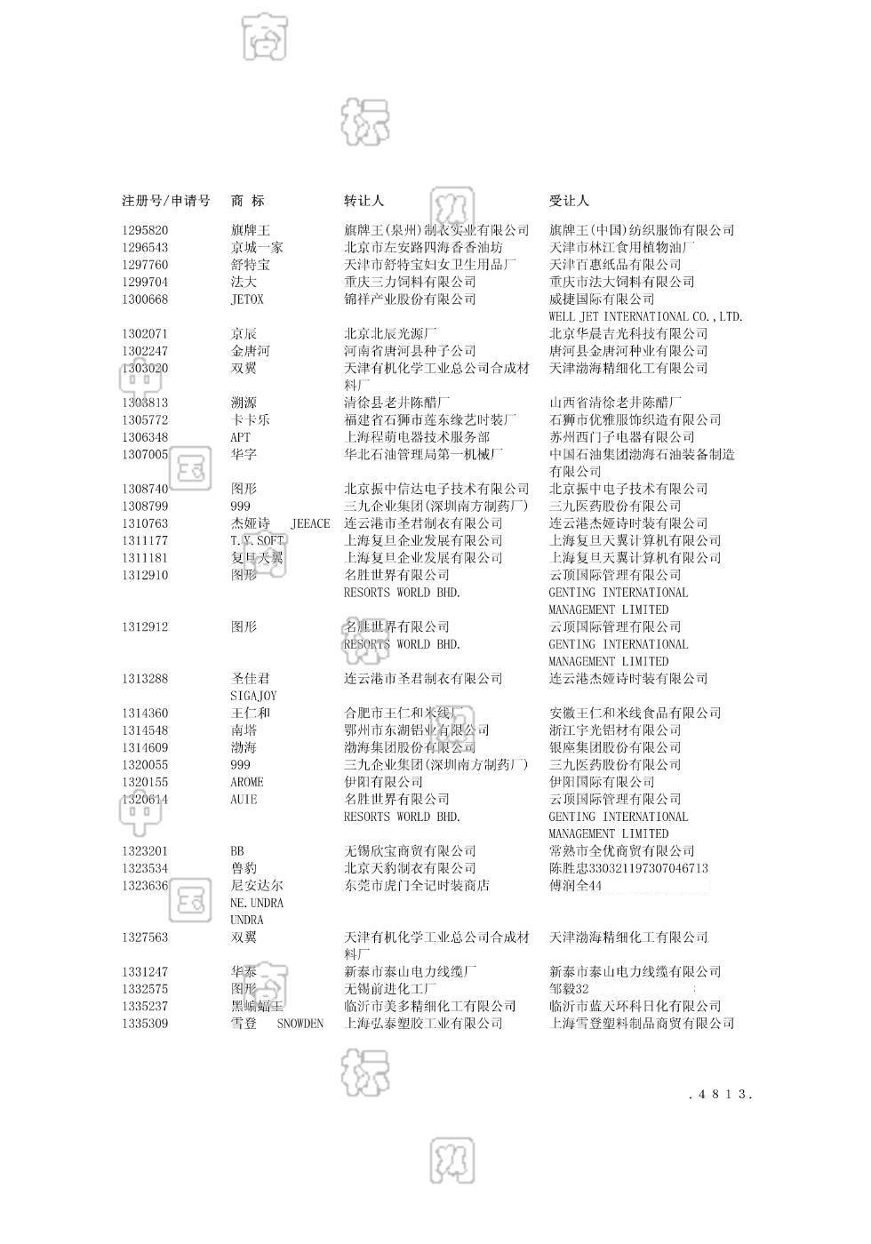 2003-08-01 商标转让 | 申请收文
