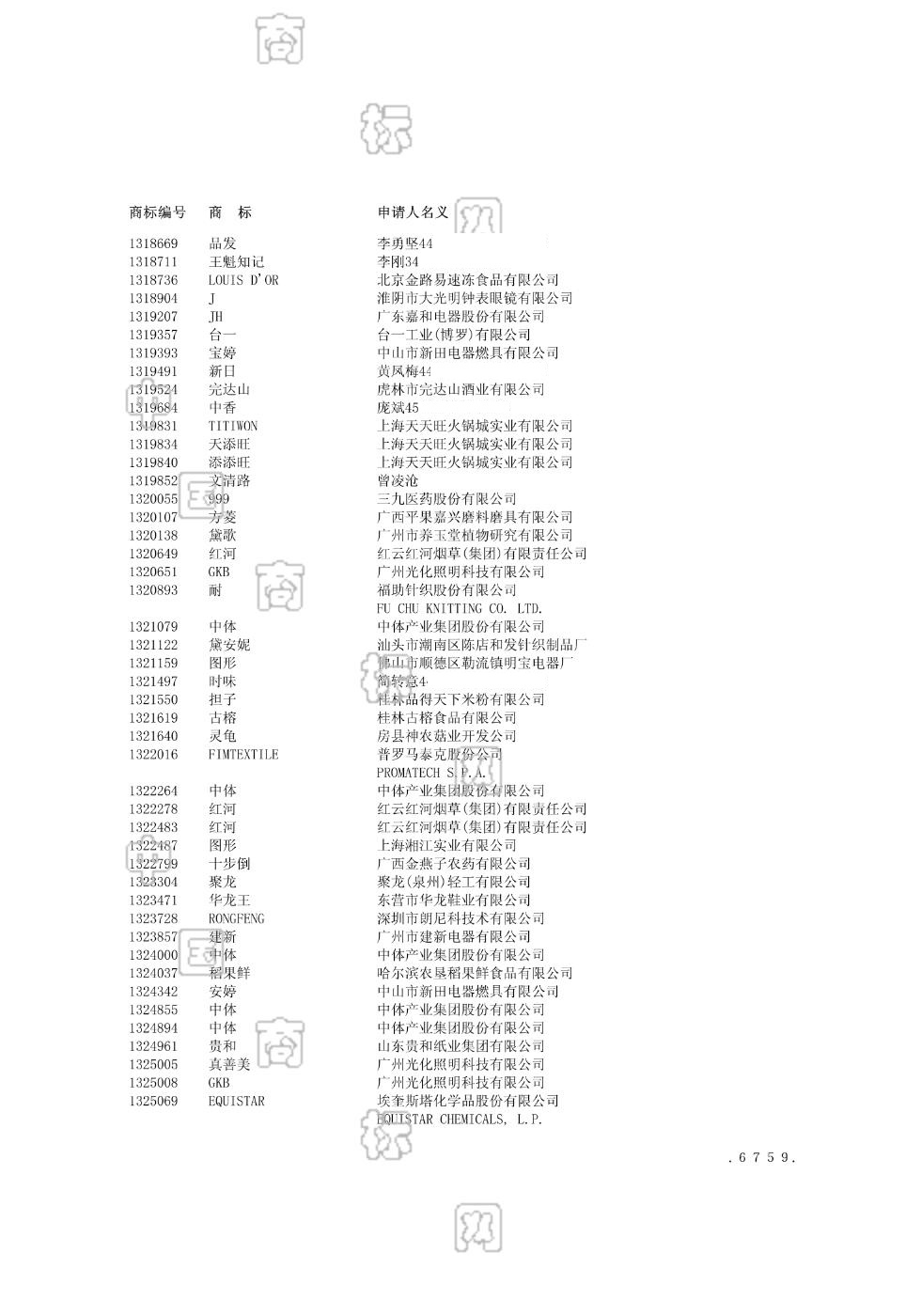 2004-04-30 冻结商标 | 冻结加注