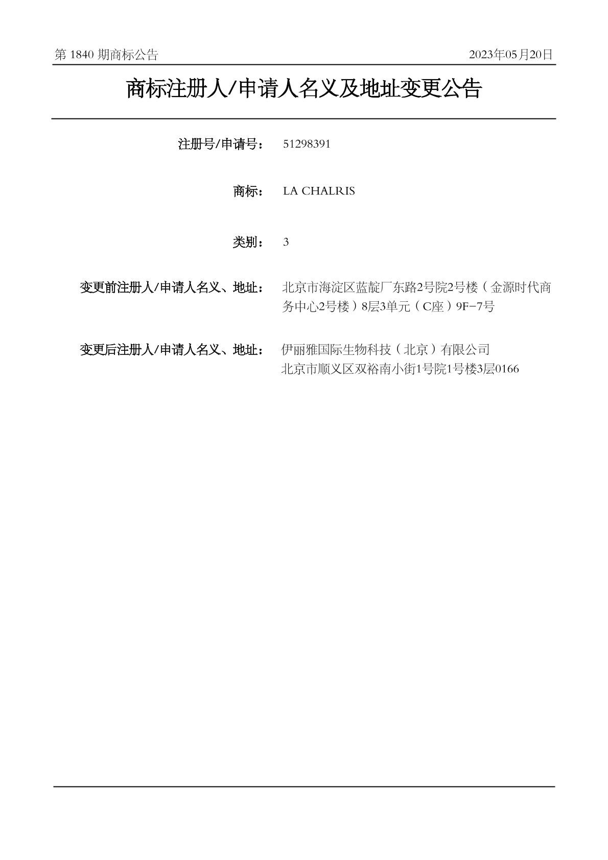 2023-05-14 变更商标申请人/注册人名义/地址 | 核准证明打印发送