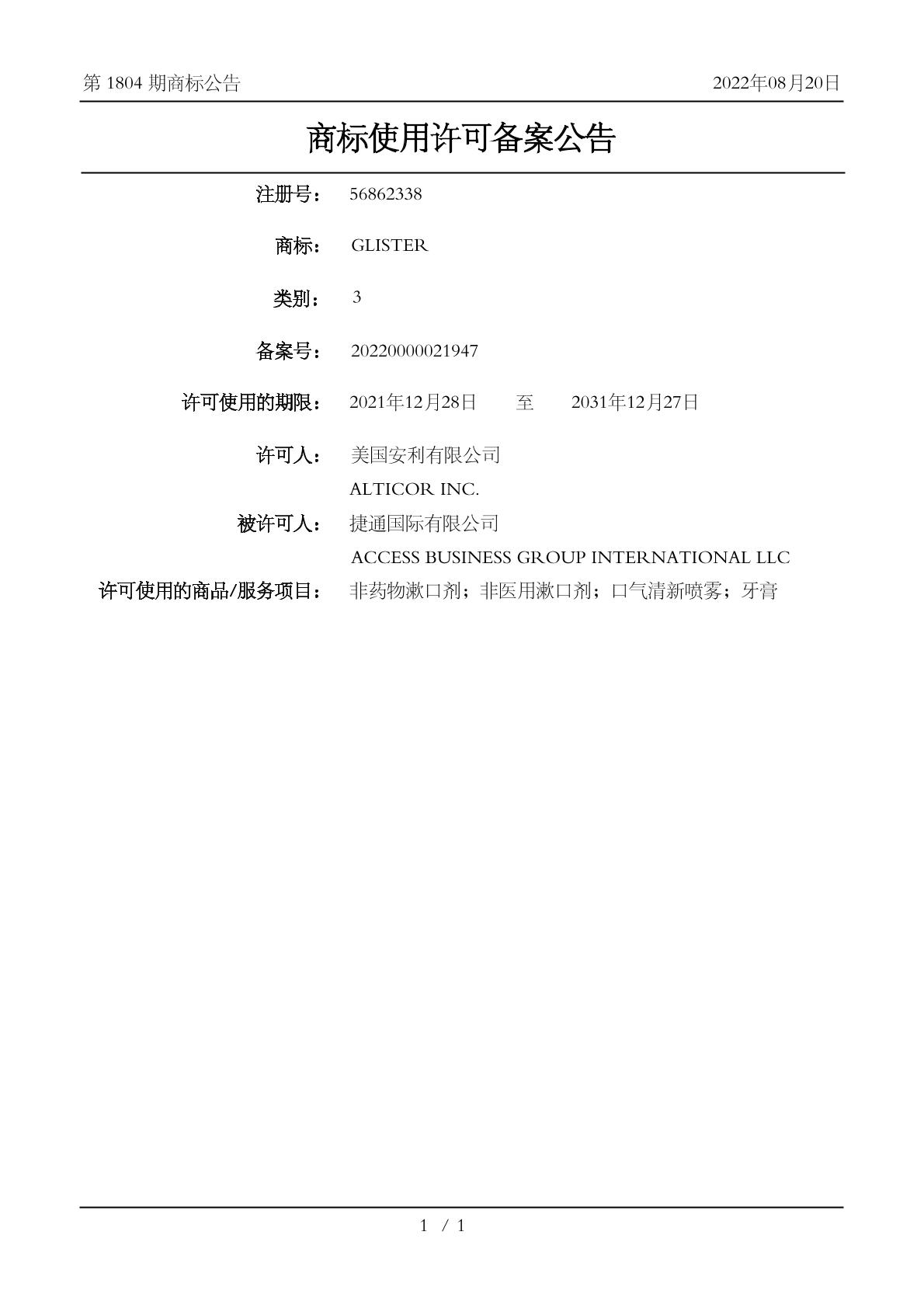 0307-口气清新喷雾;0307-牙膏;0307-非医用漱口剂;0307-非药物漱口剂 - 1761