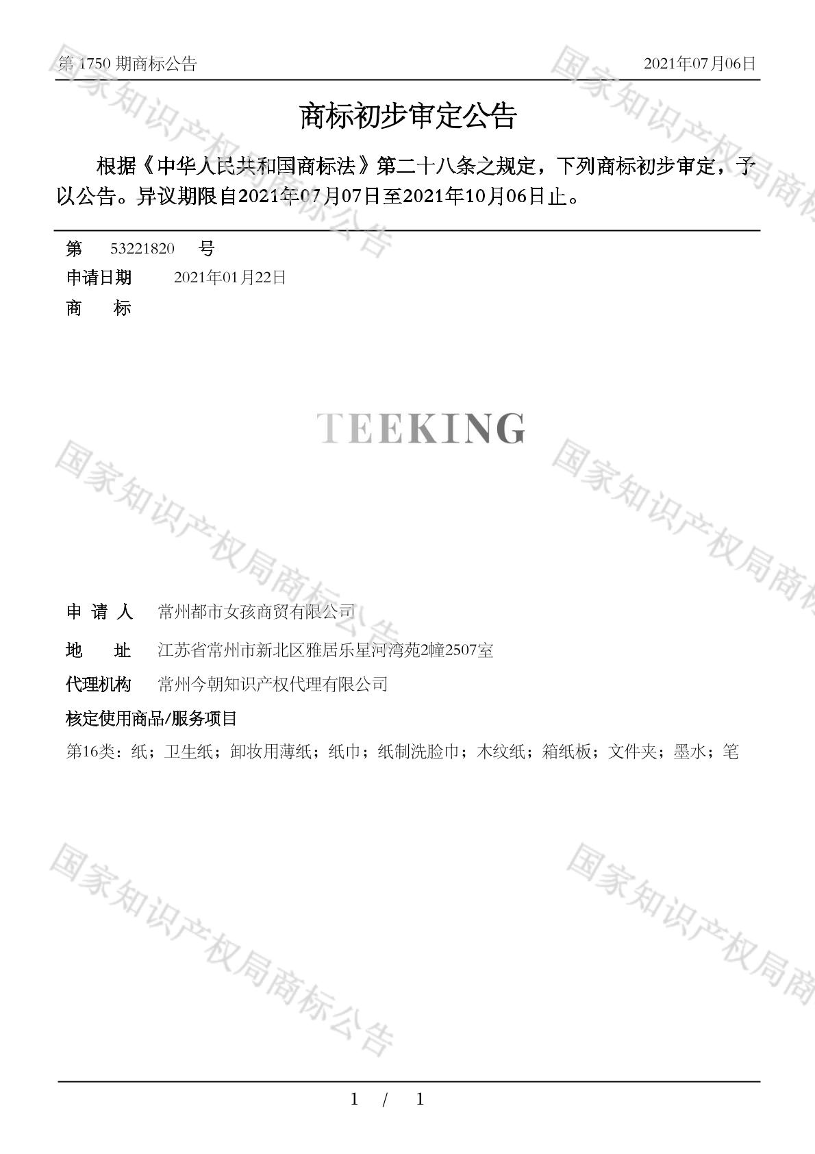 1601-纸;1603-卫生纸;1603-卸妆用薄纸;1603-木纹纸;1603-纸制洗脸巾;1603-纸巾;1604-箱纸板;1611-文件夹;1612-墨水;1614-笔 - 1750
