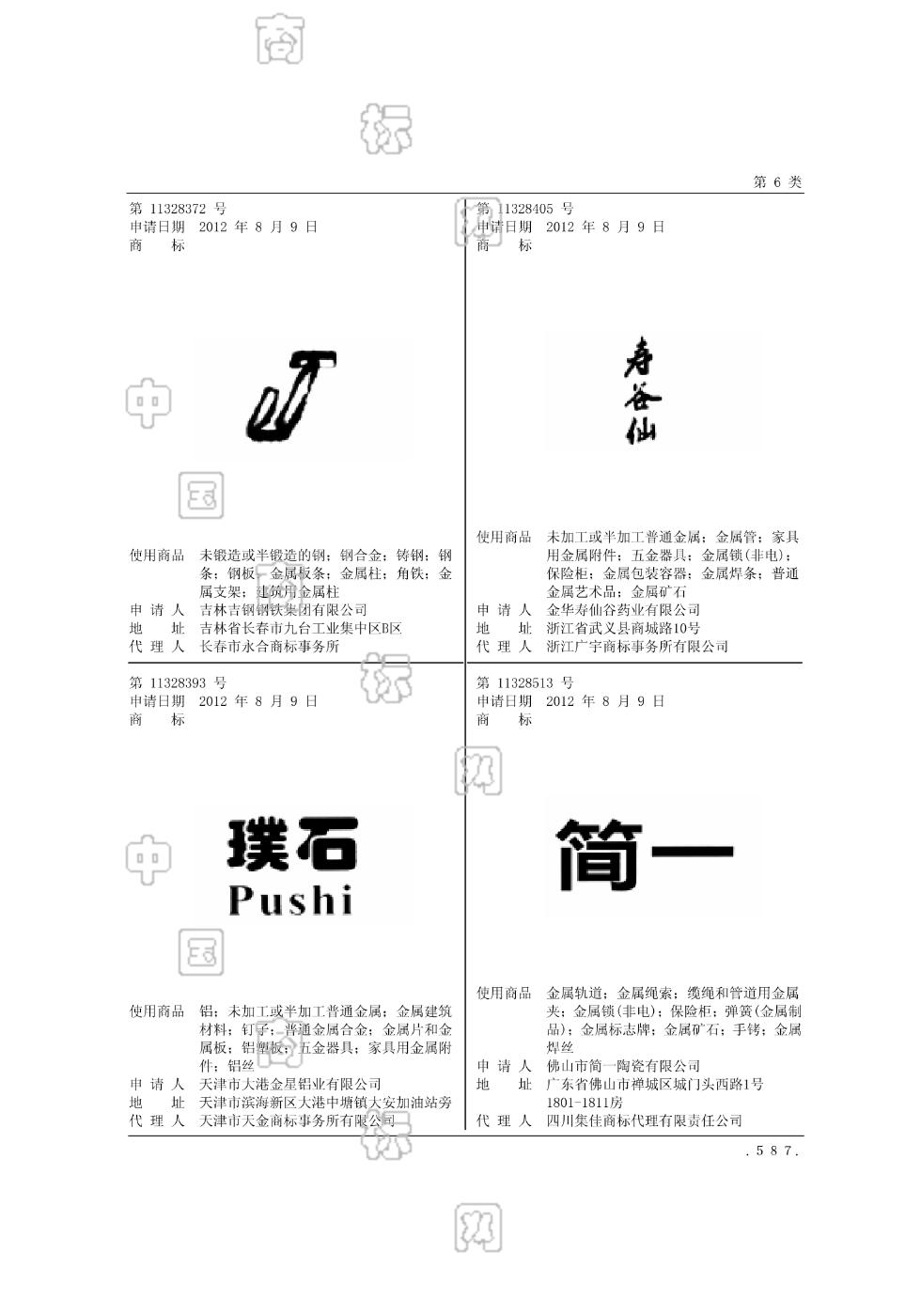 0604-金属轨道;0605-金属绳索;0606-缆绳和管道用金属夹;0610-金属锁(非电);0611-保险柜;0612-弹簧(金属制品);0614-金属标志牌;0616-金属焊丝;0618-手铐;0623-金属矿石 - 1379