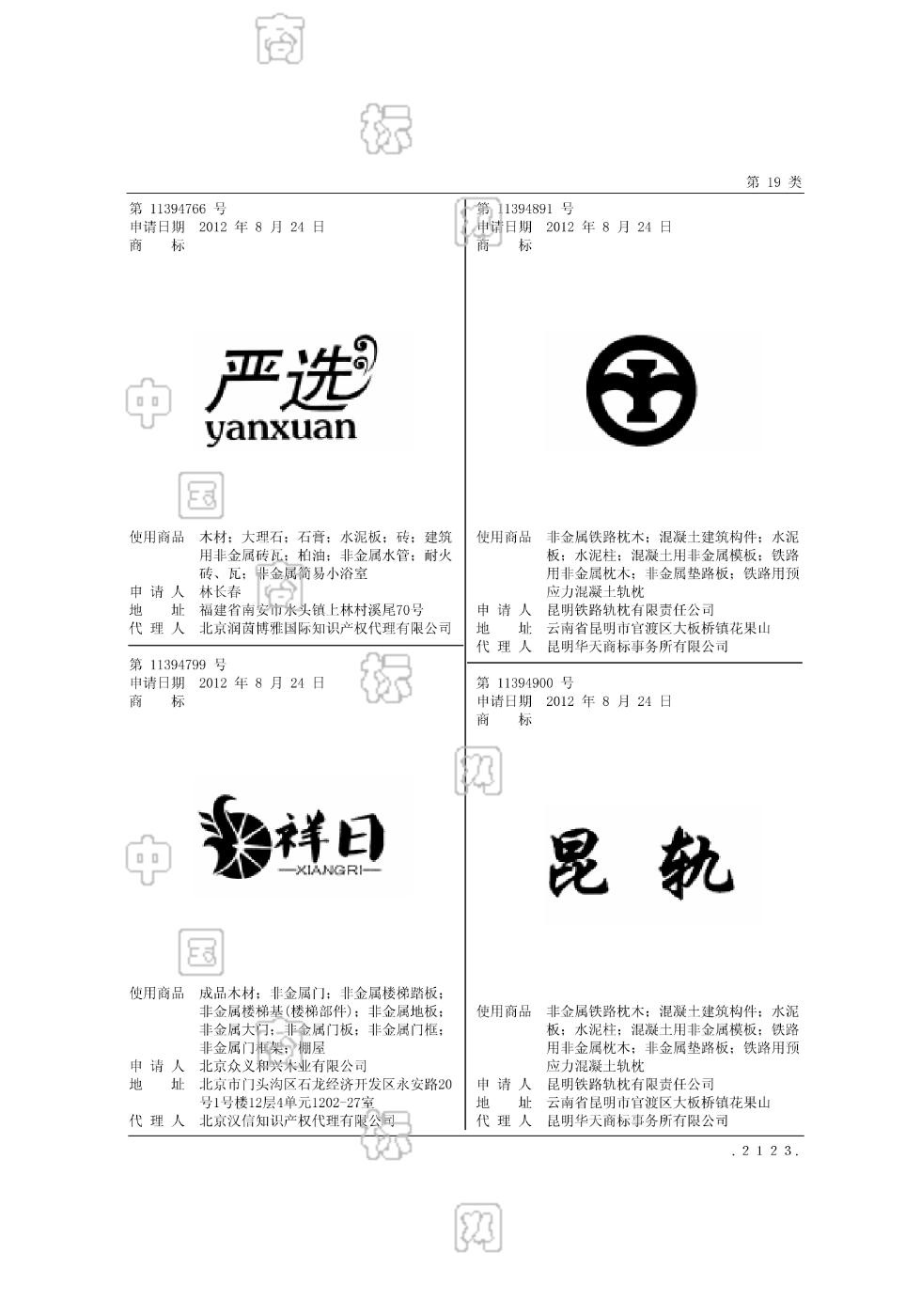1901-木材;1902-大理石;1903-石膏;1905-水泥板;1906-建筑用非金属砖瓦;1906-砖;1907-耐火砖、瓦;1908-柏油;1909-非金属水管;1910-非金属简易小浴室 - 1381