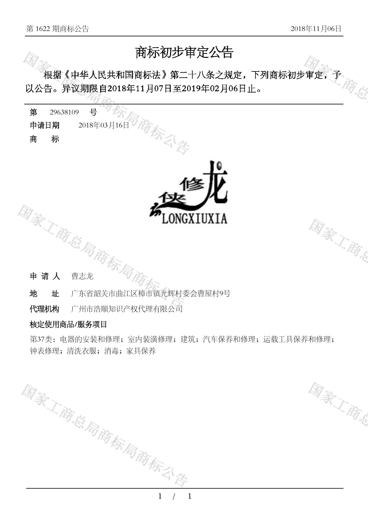3702-建筑;3704-室内装潢修理;3706-电器的安装和修理;3707-汽车保养和修理;3707-运载工具保养和修理;3708-运载工具保养和修理;3709-运载工具保养和修理;3711-钟表修理;3715-家具保养;3716-清洗衣服;3717-消毒 - 1622