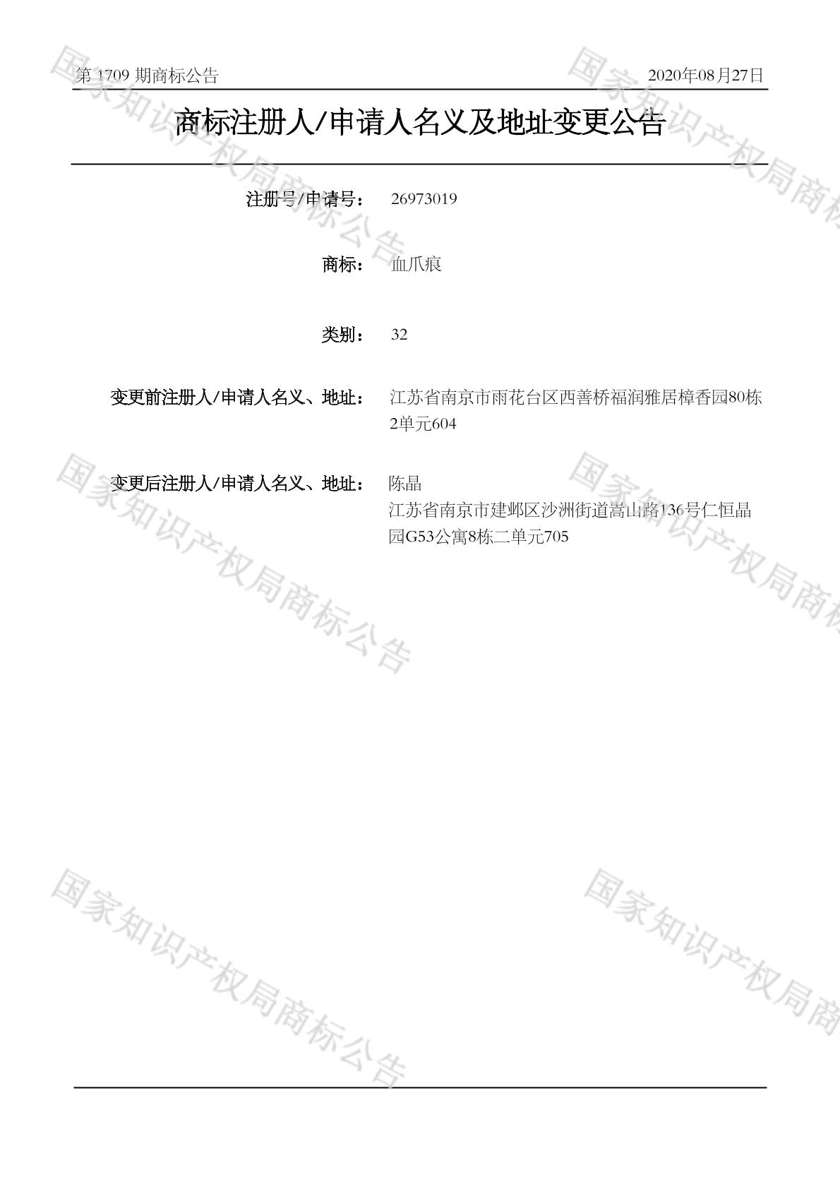 2020-07-17 变更商标申请人/注册人名义/地址 | 申请收文