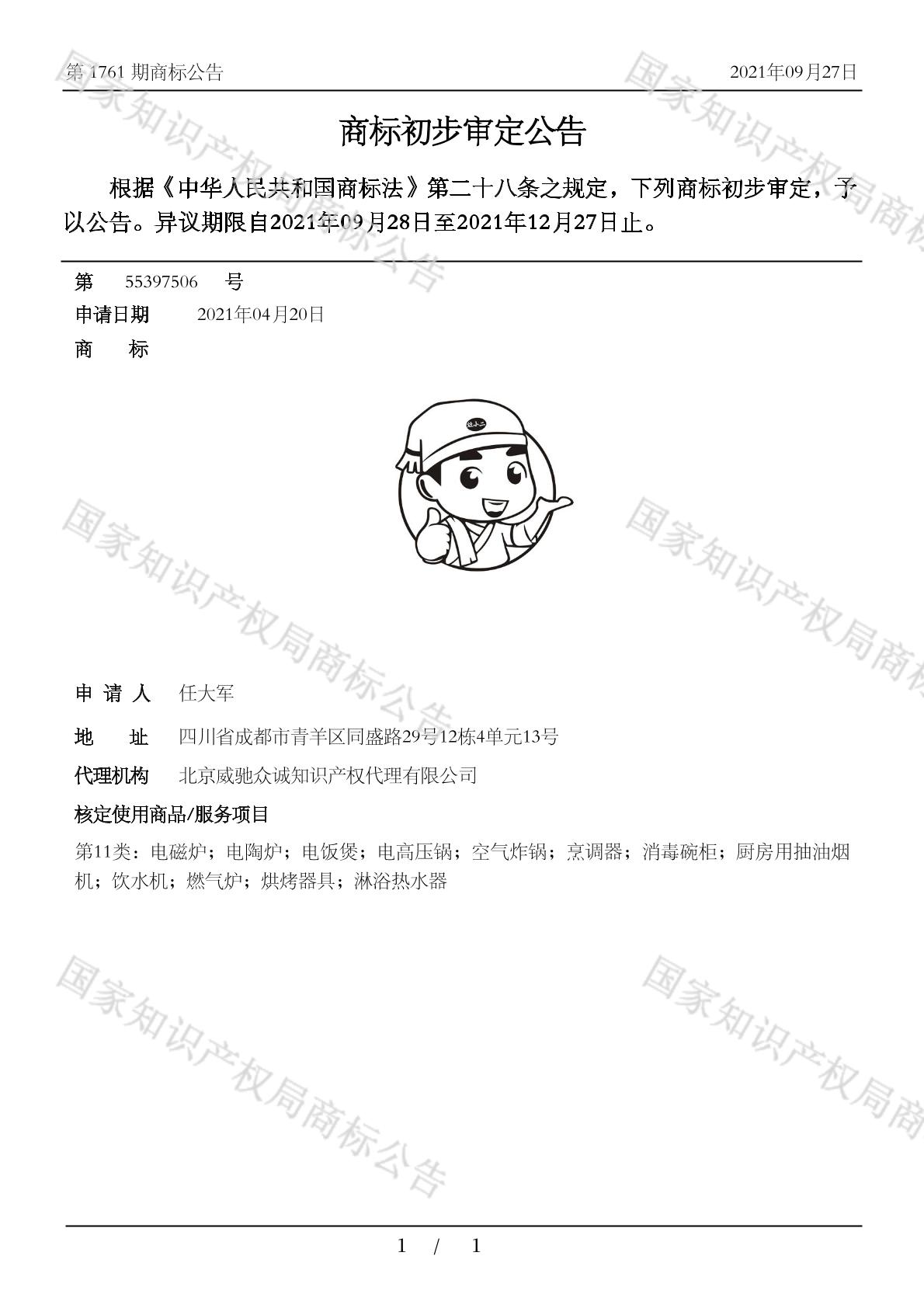 1104-烘烤器具;1104-烹调器;1104-燃气炉;1104-电磁炉;1104-电陶炉;1104-电饭煲;1104-电高压锅;1104-空气炸锅;1106-厨房用抽油烟机;1109-淋浴热水器;1110-消毒碗柜;1110-饮水机 - 1761