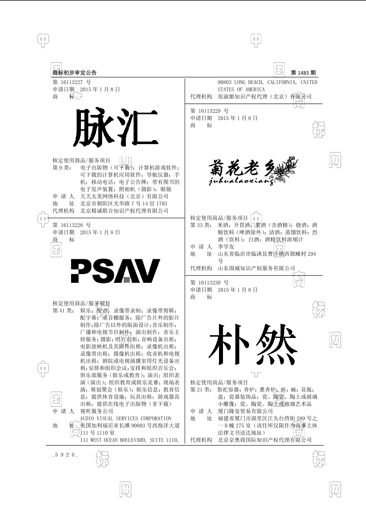 2015-04-07 商标注册申请 | 等待受理通知书发文