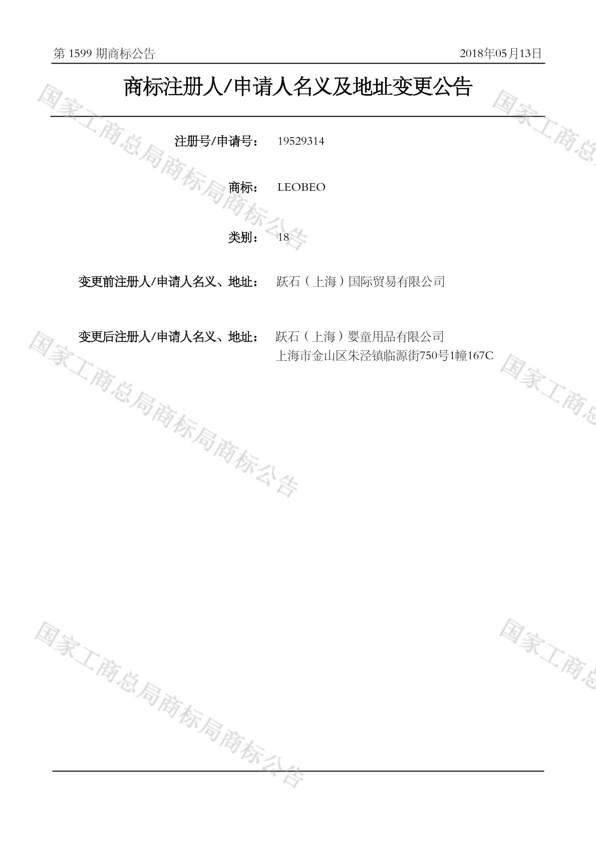 2018-05-10 变更商标申请人/注册人名义/地址 | 核准证明打印发送