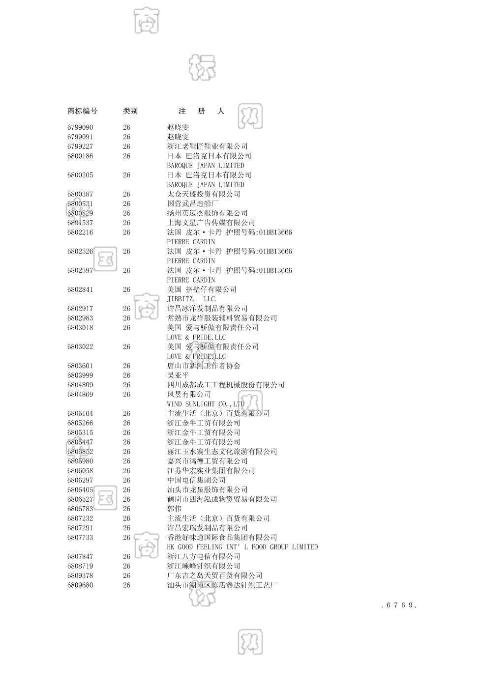 2601-绣花饰品;2602-发饰品;2603-拉链;2604-假发;2605-针;2606-人造盆景;2607-服装垫肩;2608-纺织品装饰用热粘合补片(缝纫用品);2609-在亚麻布上作标记用的字母饰片;2610-茶壶保暖套 - 1215